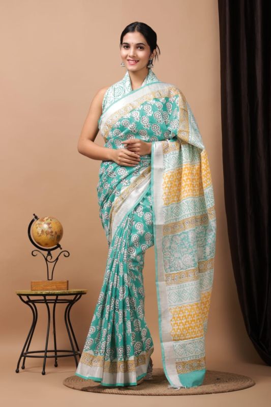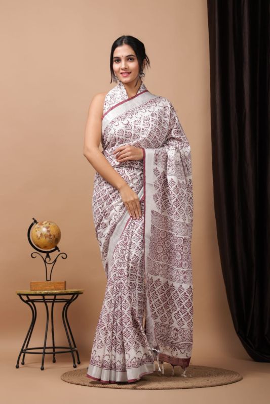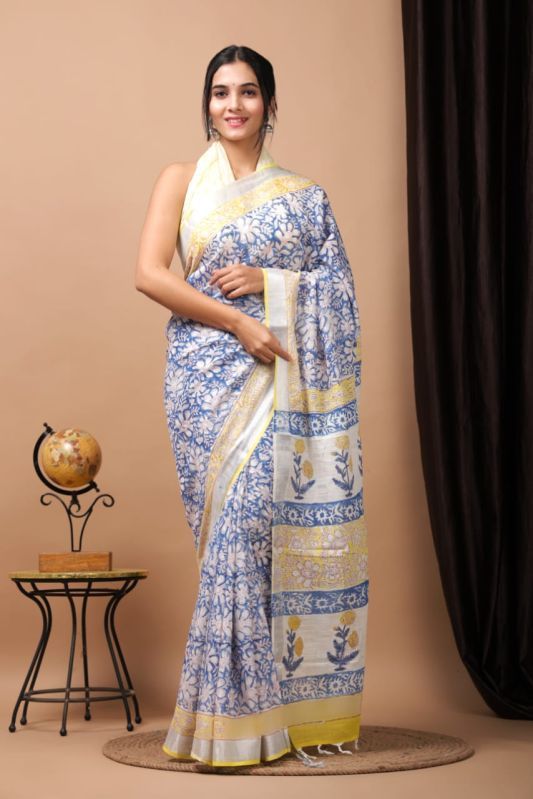 Home › Products › Ladies Printed Linen Saree With Blouse Piece